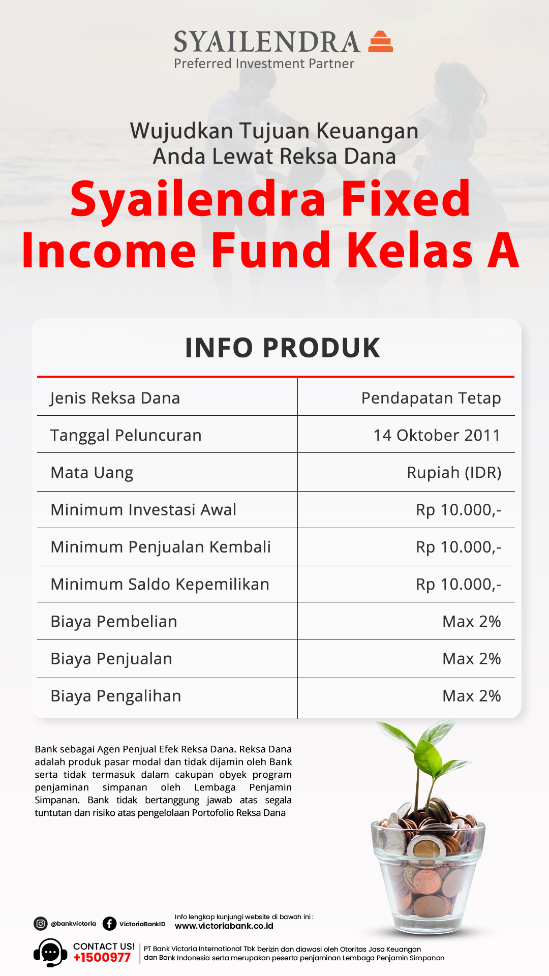 • Reksa Dana adalah produk pasar modal dan tidak dijamin oleh Bank serta tidak termasuk dalam cakupan obyek program penjaminan simpanan oleh Lembaga Penjamin Simpanan