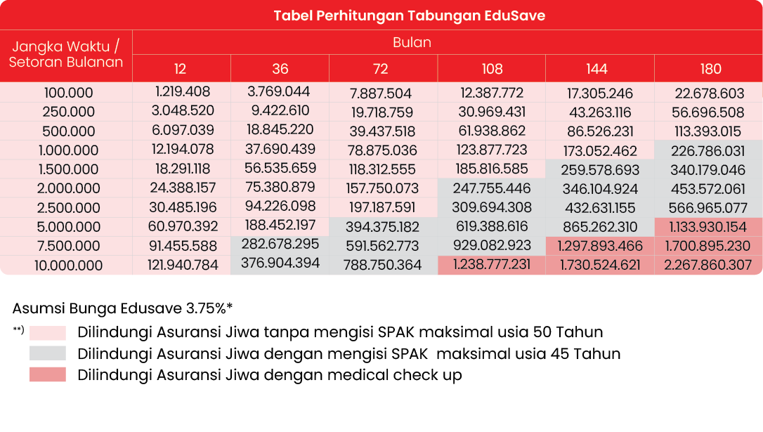 Rencanakan dan lindungi kepastian biaya pendidikan Anak Anda dengan Tabungan Victoria EduSave, dengan tambahan keuntungan berupa Asuransi Jiwa dan Kecelakaan diri. Asuransi ini memastikan sisa setoran bulanan tetap terbayarkan sampai dengan masa akhir Tabungan Victoria EduSave, sehingga biaya pendidikan Anak di masa depan tetap aman.