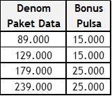 Nasabah akan memperoleh bonus sesuai dengan jenis data paket yang dipilih yaitu sebagai berikut: